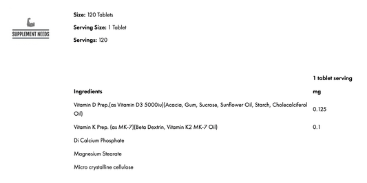 SUPPLEMENT NEEDS VITAMIN D3 AND K2 (MK-7) - 120 TABS